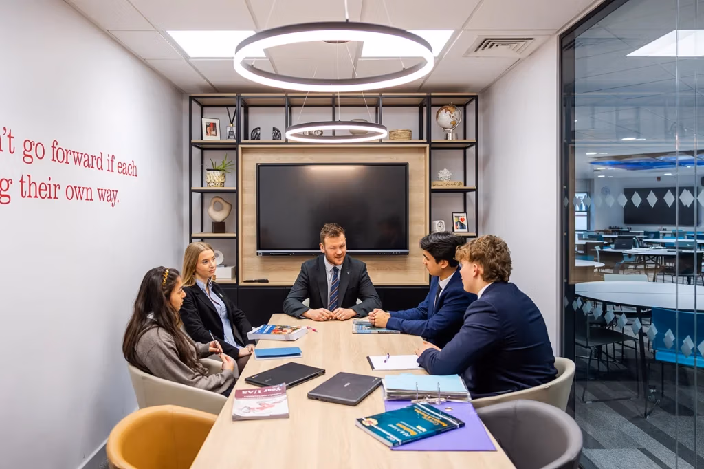 Our dedicated Sixth Form home, the Queen’s Building, was recently refurbished to provide calm, silent study areas, collaborative workspaces, meeting rooms and Café 1705 — spaces where students learn to manage their time, work together and take real ownership of their studies in a way that mirrors university life.