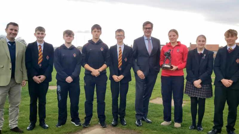 Above: CCF Pupils with their Pringle Trophy, with CCF Contingent Commander Mr Jones (far left) and Principal Will Scott (fourth from right)